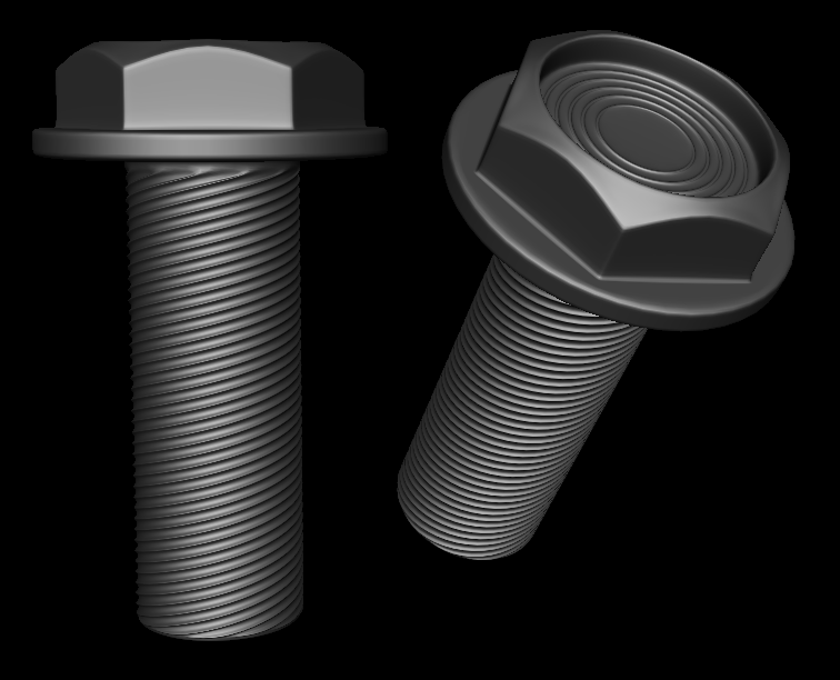 edit: Fixed the threading on the bolt so it's more accurate to a real one. Just intersected a simple helix primitive instead of trying to make it all one solid mesh.