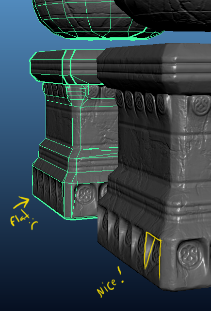 I trimmed the poly count of the brazier down a bit more, knocked out a few hundred triangles.